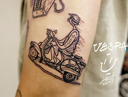 팔에 빈공간에 채우는 느낌으로 들어간 라인타투.